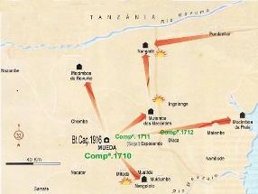 O dispositivo militar na zona de Cabo Delgado centrou-se em MUEDA, capital tradicional dos Macondes, ponto de convergência de todas as grandes vias de comunicação que liga o planalto ao mar, vinda de M. da Praia; a norte para Tanzânia, através de Mocimboa do Rovuma; ao sul em direcção a Nancatari, Montepuez e a Pemba (Porto Amélia); e ao interior do planalto, para Nangololo, Muidumbe e Miteda.